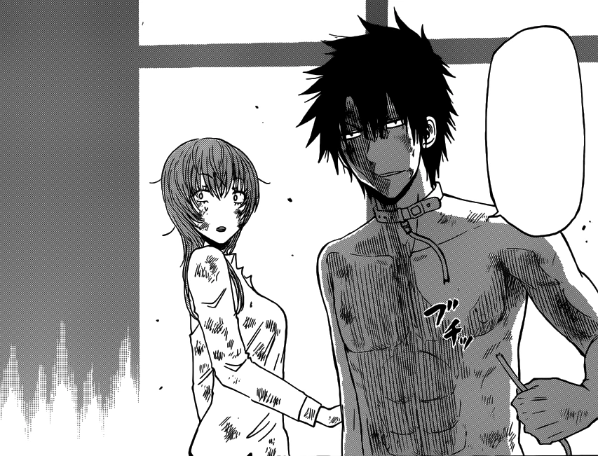 Unconscious, Oga's body is treated by one of Lamia's Muumuus.[31] He eventually wakes up and starts walking towards Furuichi, ignoring Hilda. He asks for the tissues again before telling Furuichi that he is strong enough without the tissues.[32]